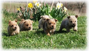 Federal regulations on airline pet transportation are strict and your Norwich Terrier puppy will be handled with the greatest of care. During peak hot-summer or cold-winter periods, you will need to be flexible about flight schedules. U.S.D.A. and airline regulations state that live animals cannot be shipped if the temperature at the departure point, or any transfer point in route, is forecasted to be below 45 degrees or above 85 degrees. Depending on certain variables, we can sometimes get a veterinarian waiver for temperatures as low as 20 degrees. There is, however, no waiver allowed for the high temperature, although midnight flights often avoid the high limitation. For this reason, we will need an alternative airport should inclement weather require a flight change. The safety and health needs of your Norwich Terrier puppy will always determine the exact time of shipment.